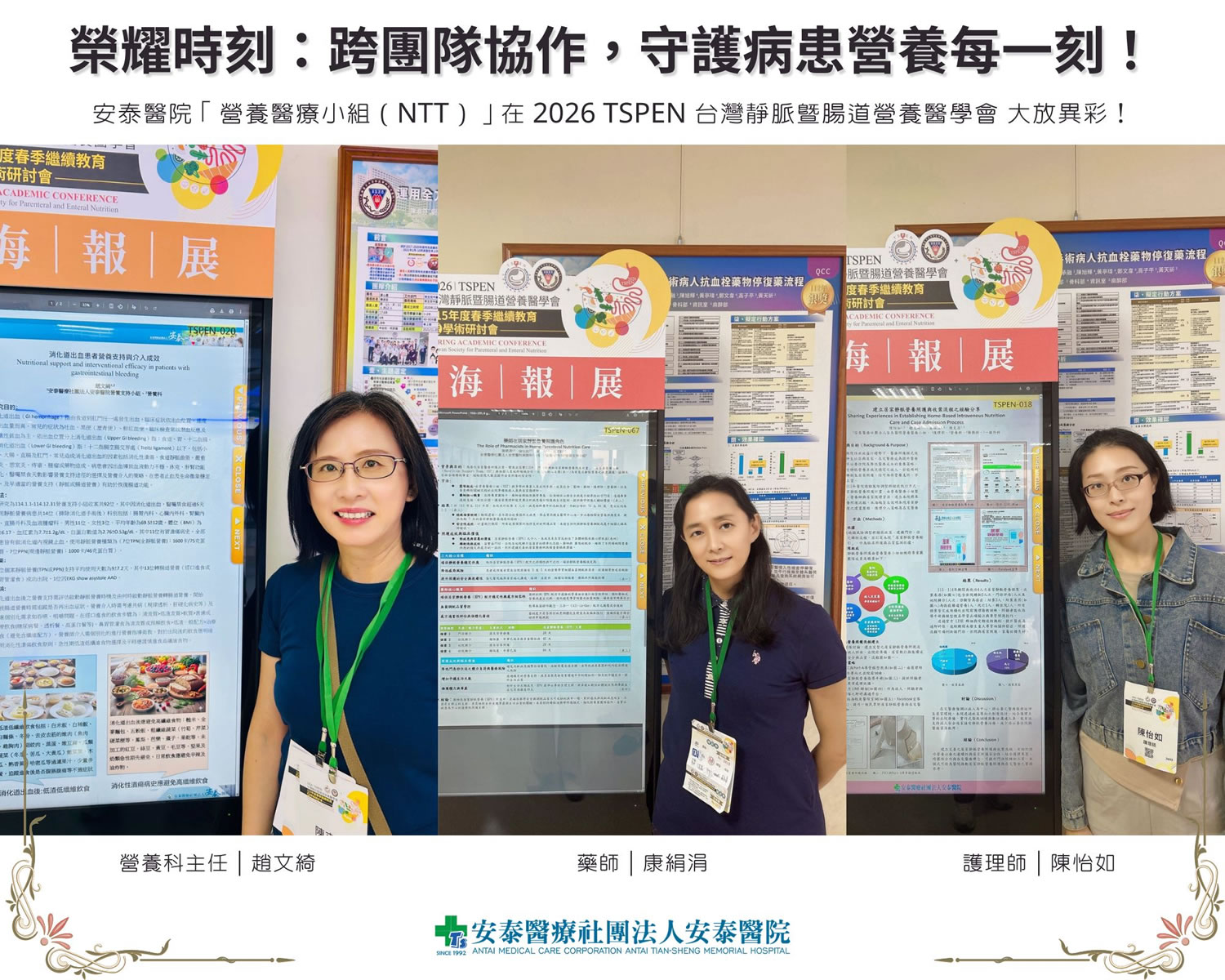 - 新聞│安泰醫院營養醫療小組於 2026 TSPEN發表多項成果,展現病患營養照護領先實力