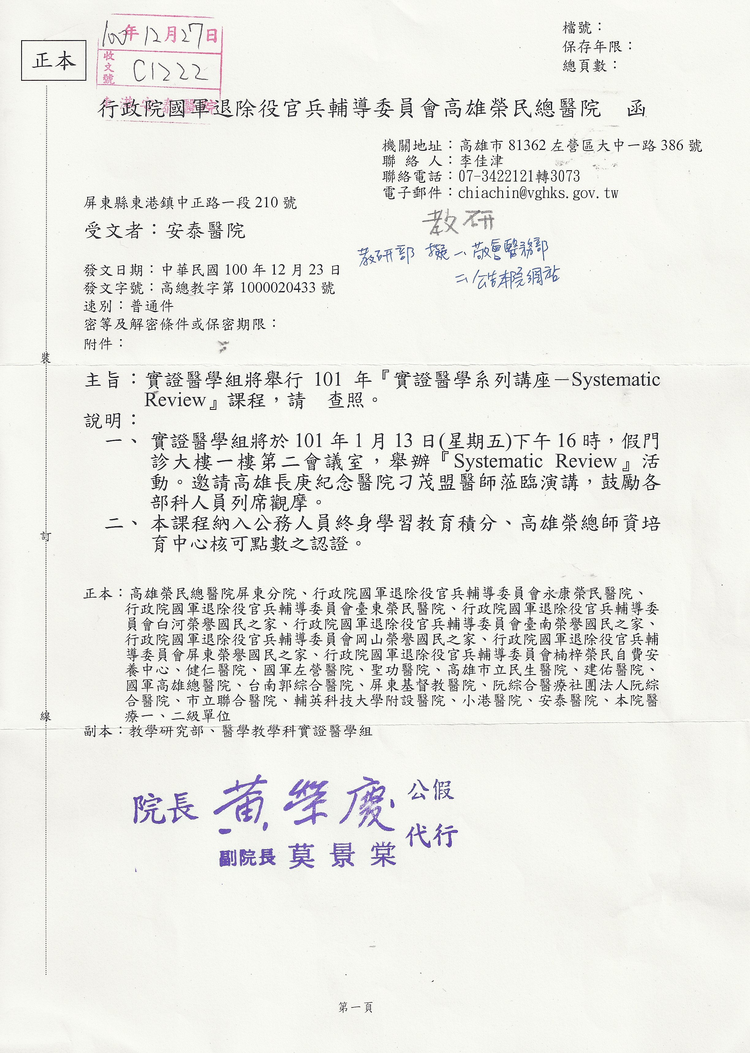 地點:高雄榮民總醫院門診大樓1樓第二會議室