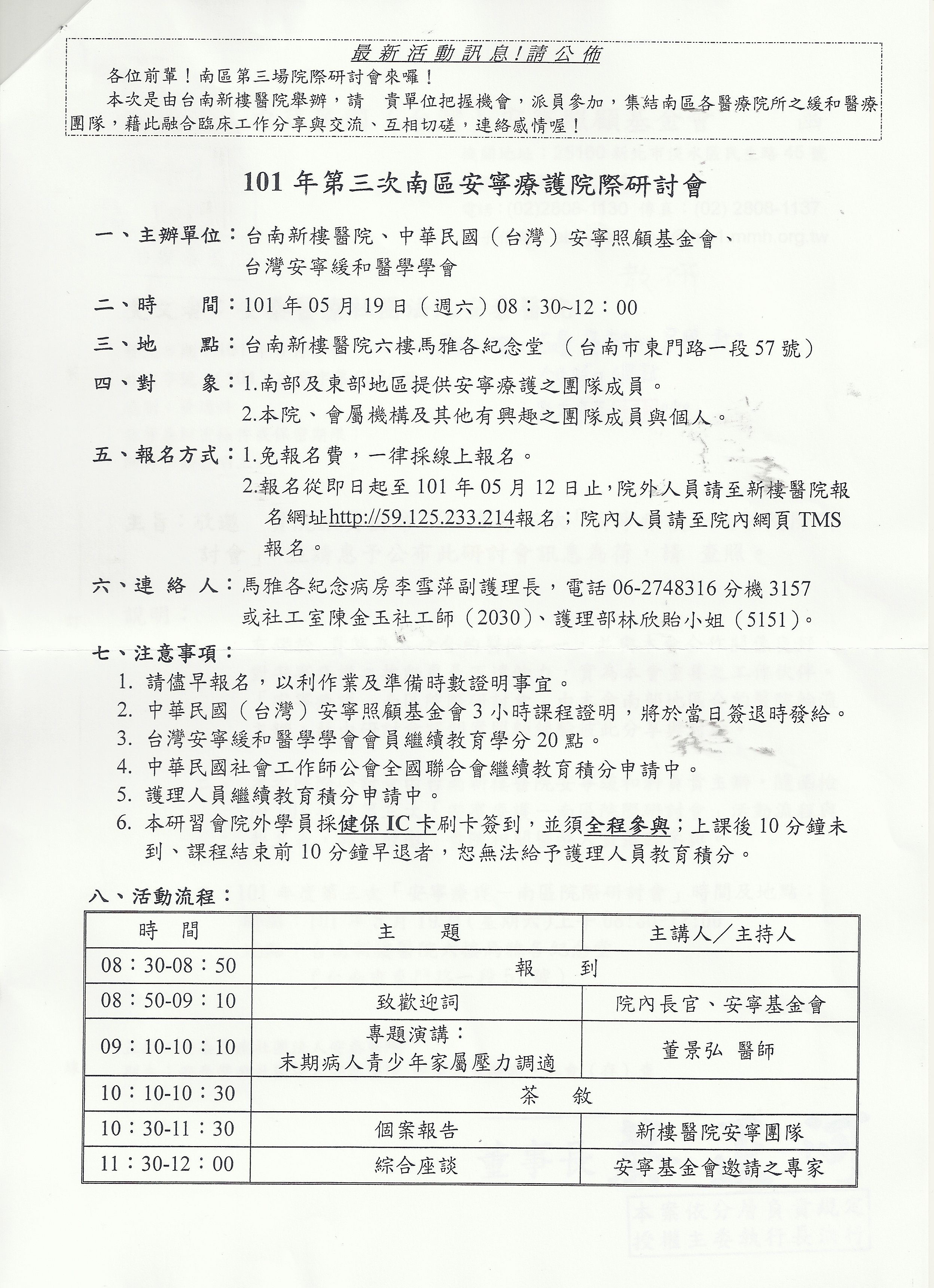 研習名稱:101年第三次南區安寧療護院際研討會