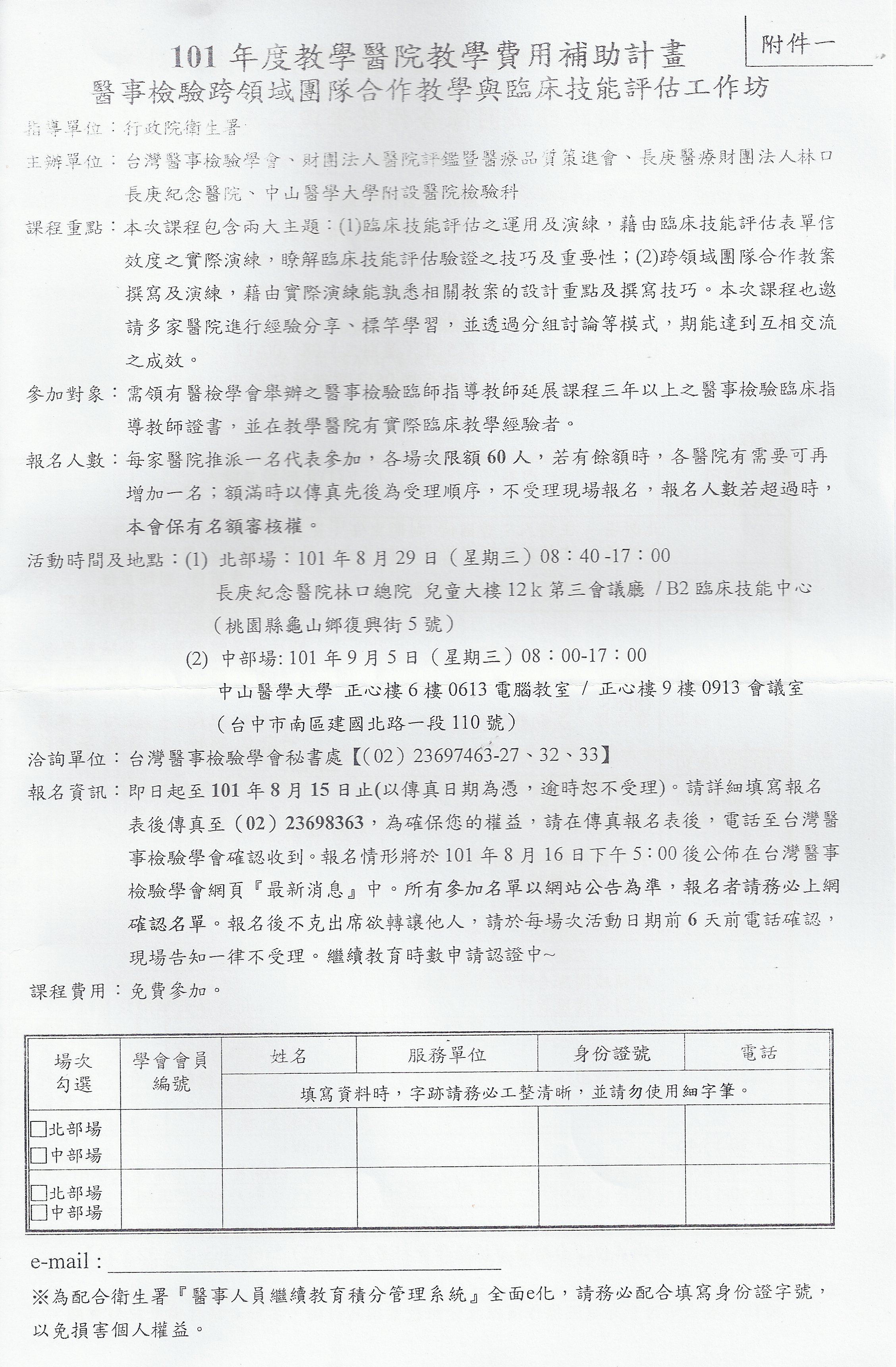 聯絡人員:台灣醫檢學會祕書02-23697463轉27、23、33
