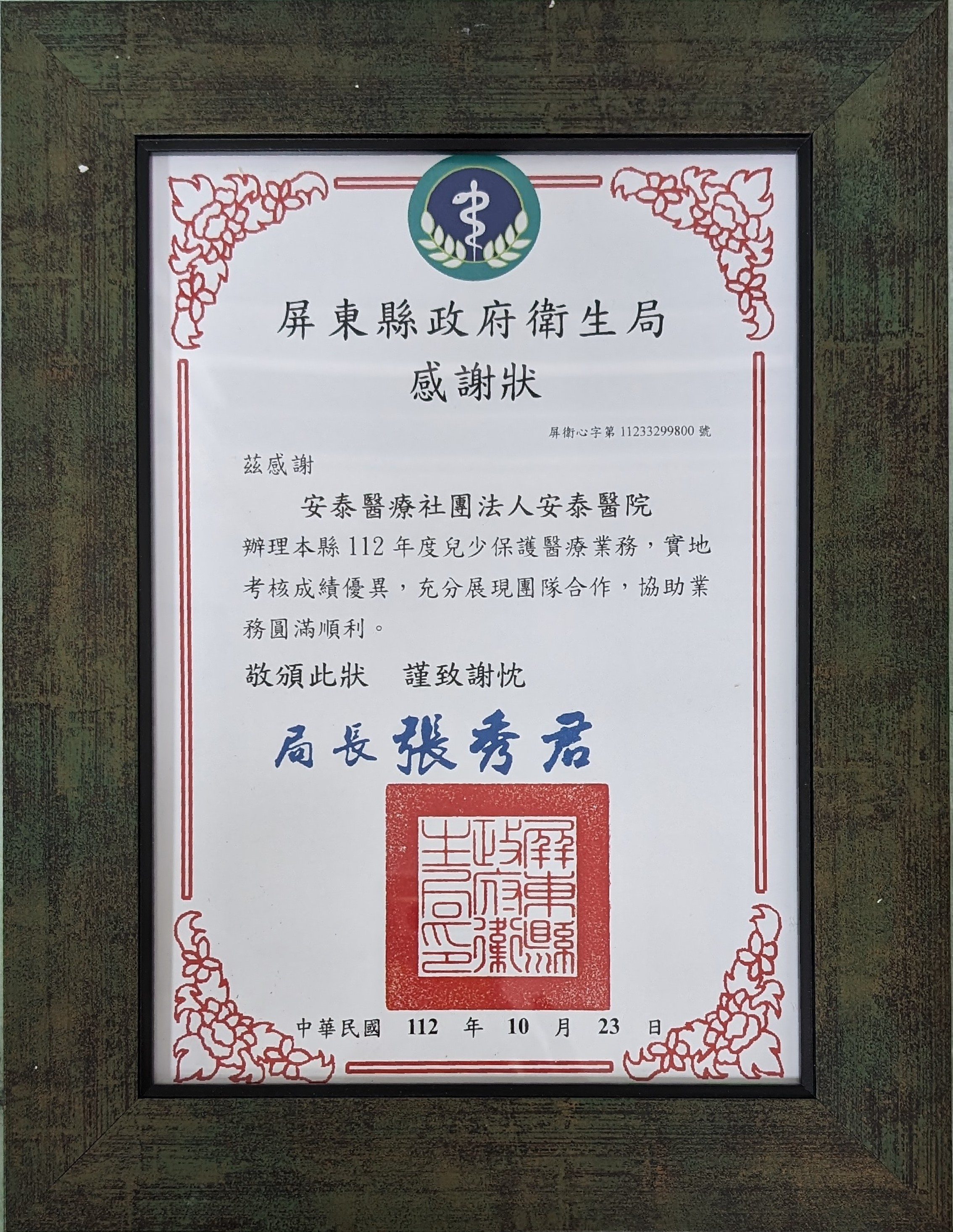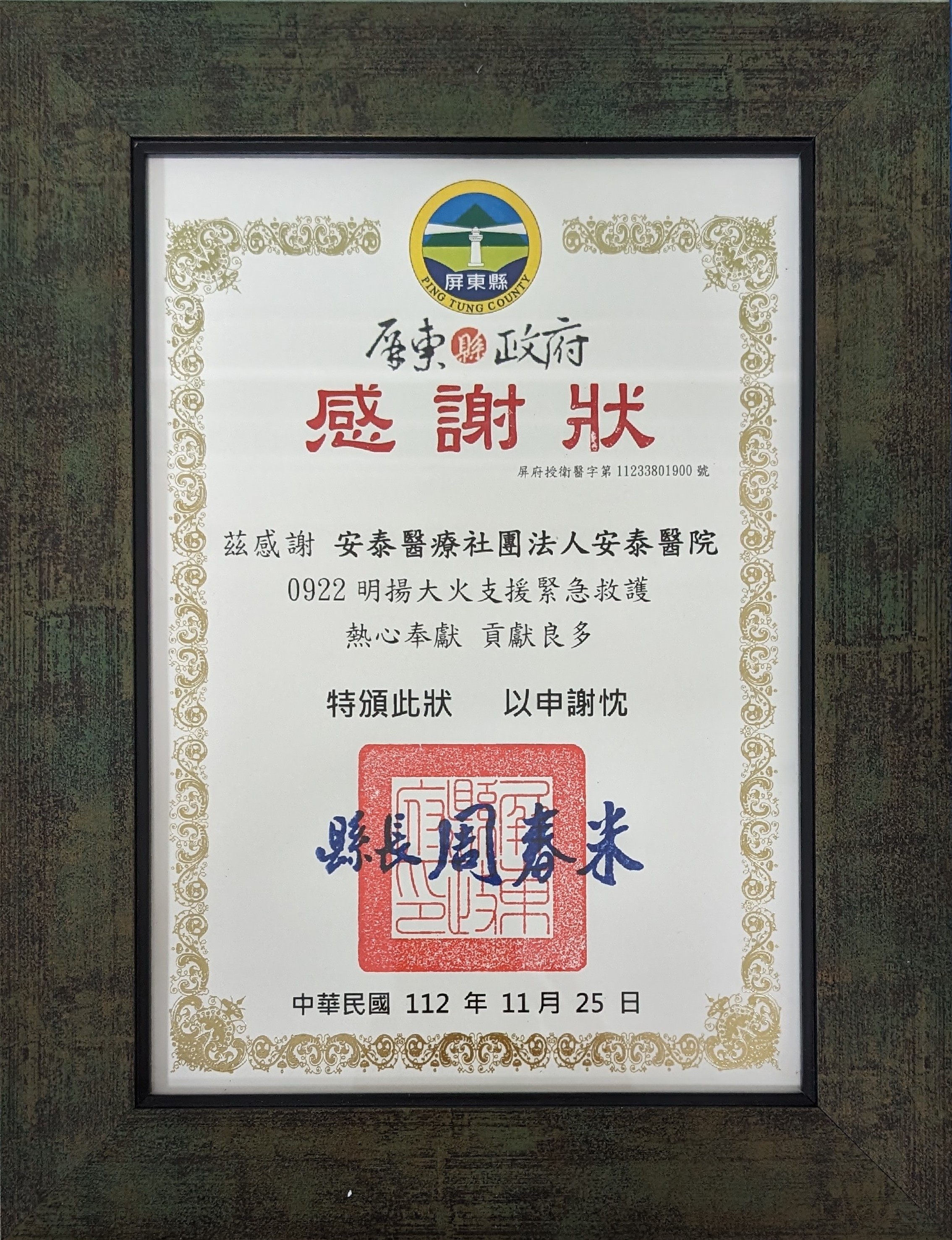 2018.06-感謝狀 內容: 授獎單位:屏東縣政府 |