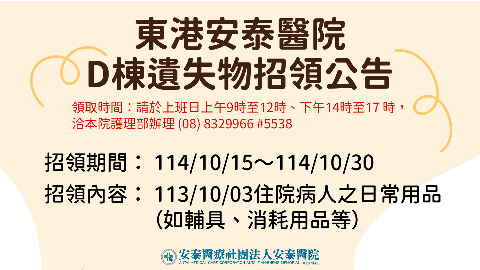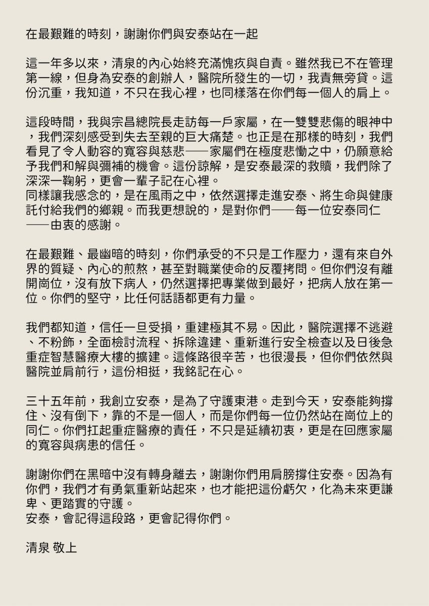 - 安泰醫療社團法人安泰醫院 聲明稿│1140820