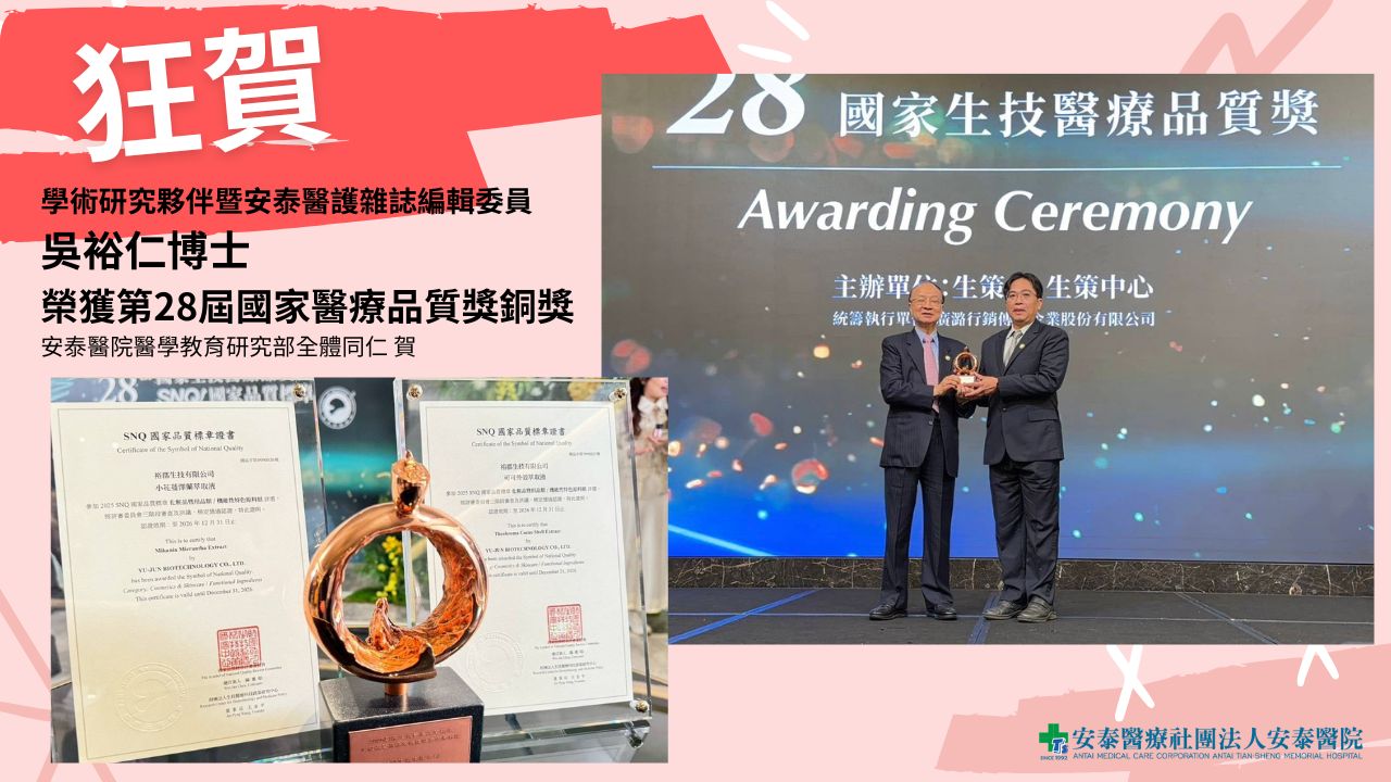 - 新聞│安泰醫院劉文治醫師團隊於「第八屆優秀論文大獎賽」獲獎