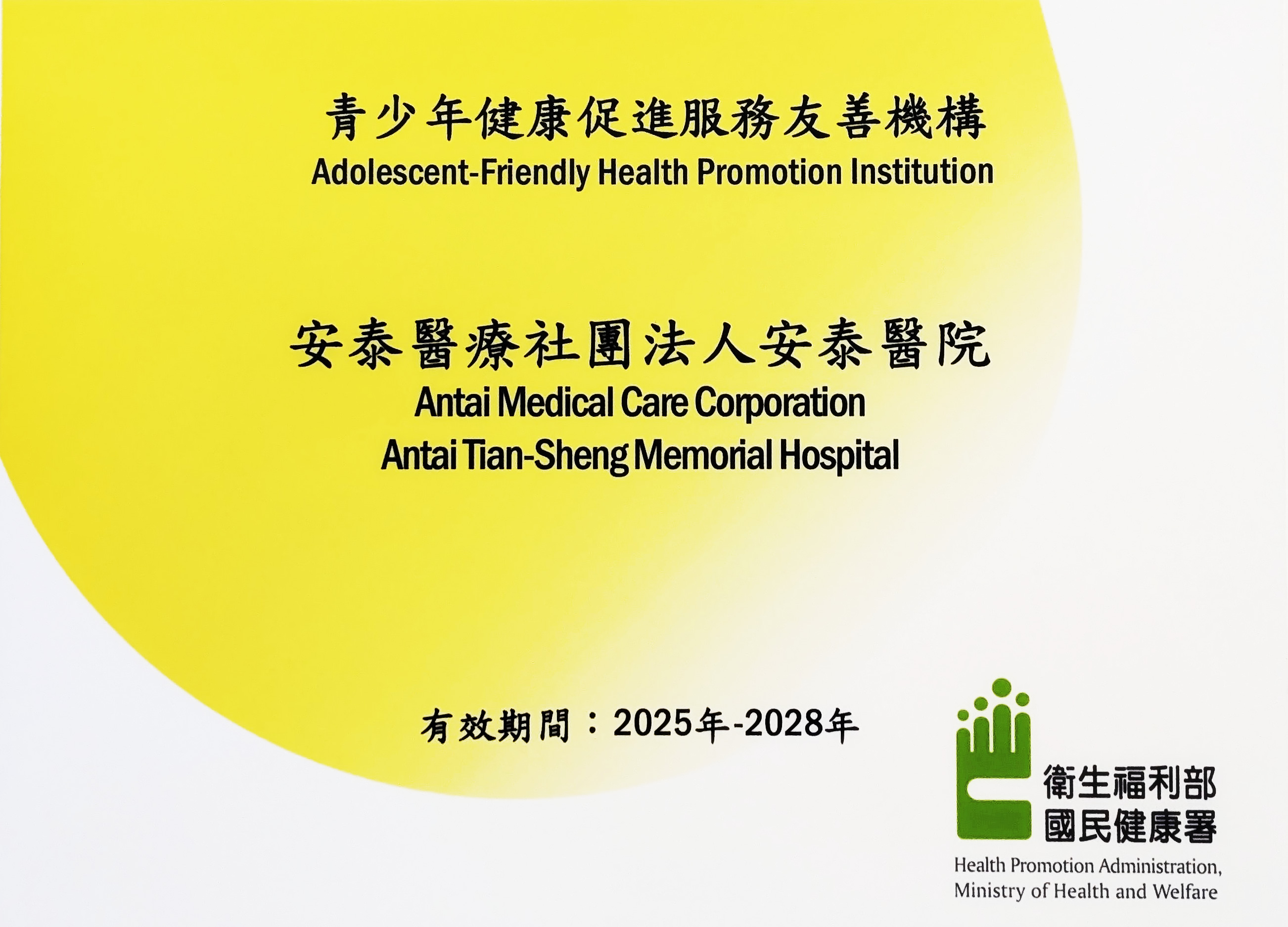 2021.11 安泰醫療社團法人安泰醫院 單位:衛生福利部國民健康署 |