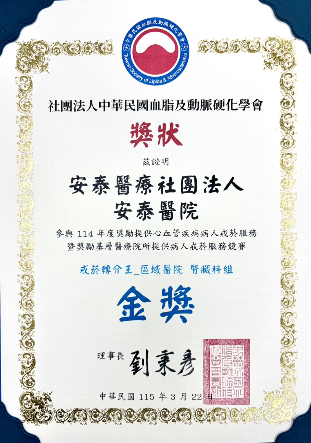 戒菸轉介王_區域醫院 腎臟科組【金獎】:安泰醫療社團法人安泰醫院